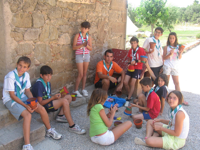 Així, durant tot el matí, ens vam dedicar a pintar i decorar uns testos de terrissa… Després de decorar-los i deixar-los ben bonics, vam posar-hi terra i llavors i ho vam regar tot perquè sortissin unes flors ben boniques. Un bon record d’aquestes colònies, oi?