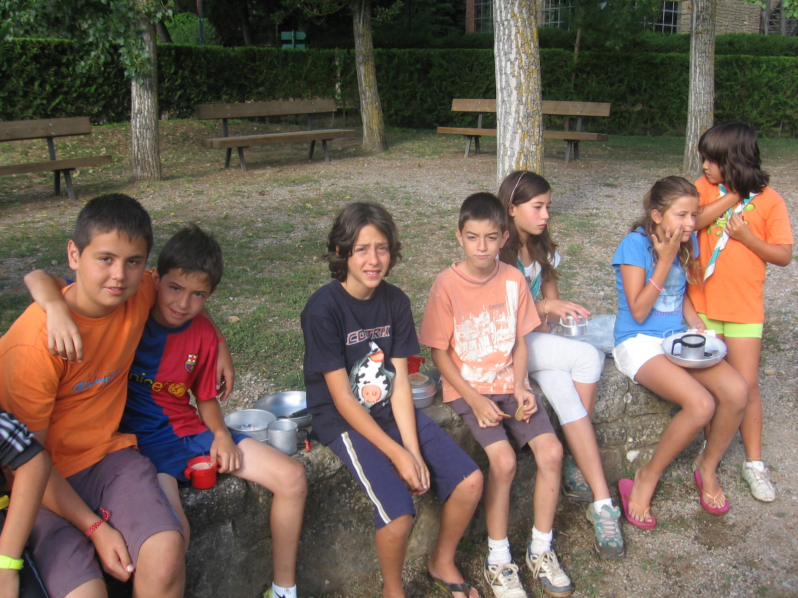 Tots amb els plats i gots de metall a la falda… amb molta gana!