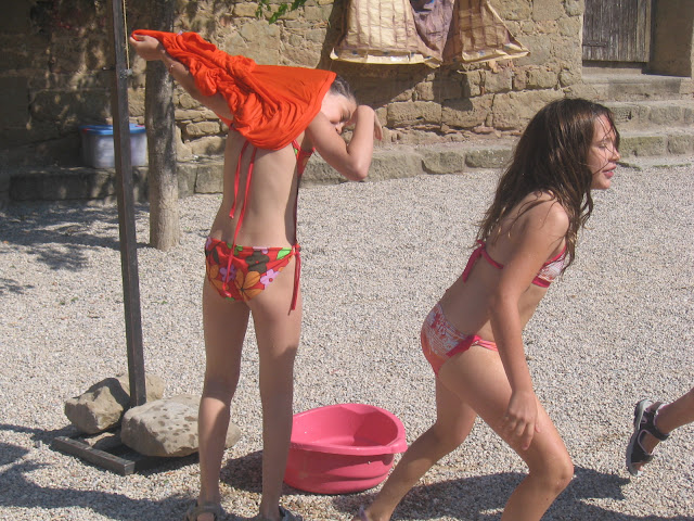 Manguerades, dutxes i tots nets cap a sopar!! (Per sopar hi havia verdura i llonsat de porc amb xampinyons. De postres, natilla de xocolata).