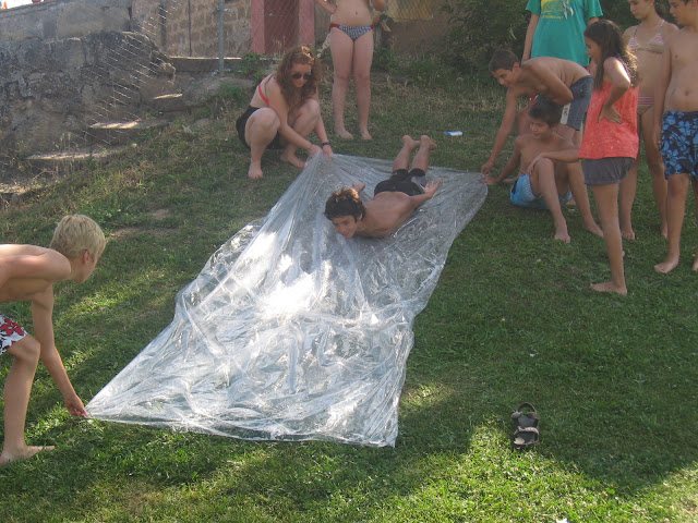 Les proves eren ben divertides, refrescants i originals! Ens vam embrutar de farina, ens llençar per un tobogan relliscós, vam passar amb espelmes enceses per una pluja d’aigua, vam fer la bugada amb samarretes gegants,… quin remuller!!!!