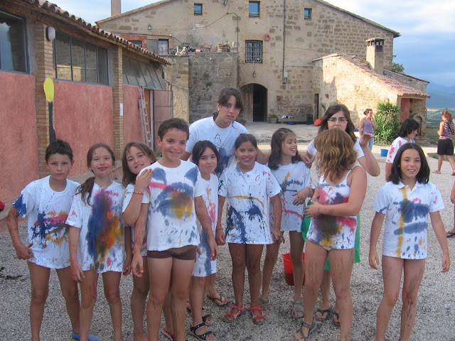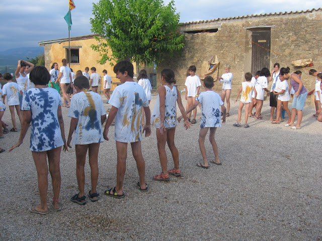 Ens vam posar la samarreta blanca que portàvem i, amb unes xeringues gegants a les mans, vam fer una guerra de colors (aigua amb tint) per decorar les samarretes!!! Van quedar mooolt xules!