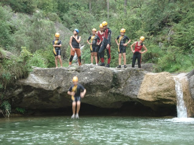 D’activitat extraordinària, iniciativa estrenada l’any anterior amb un “rafting”, vam anar a fer barranquisme… quina fila fèiem uniformats amb els vestits de neoprè!
