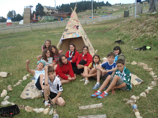 En acabar els nostres tipis el gran cap indi va tornar i ens va donar un missatge, que només podeim obrir a la nit, i va asignar els rols a cada un dels nens i nenes de cada grup: Cap de la tribu, bruixot, caçador, cuiner… papers que canviaran cada dia.