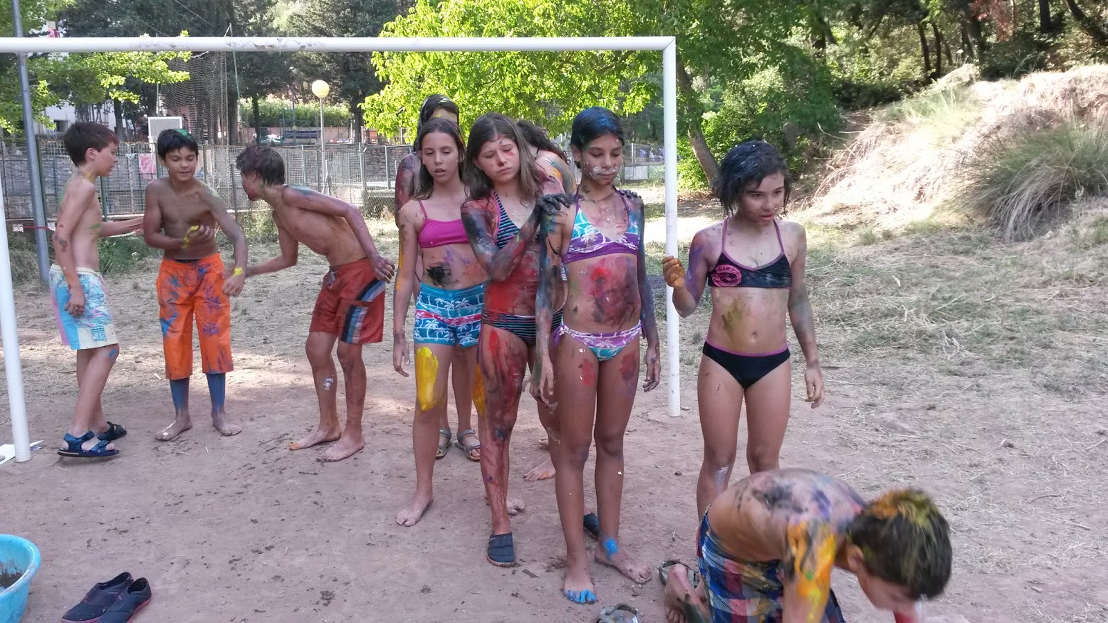 La Reina de l’Illa ens va explicar als més grans que el següent pas per una bona supervivència és la seguretat familiar, i ens va demanar si podíem completar un arbre genealògic que havia perdut les fotografies, així que vam jugar tots a un gran paintball, on vam acabar de pintura fins a les orelles. A més, ens vam embrutar de cap a peus a la “gimcana guarra” per acabar d’aconseguir el nostre propòsit. Després d’això, vam anar tots de cap a la dutxa!